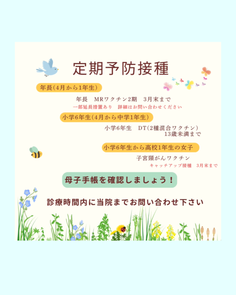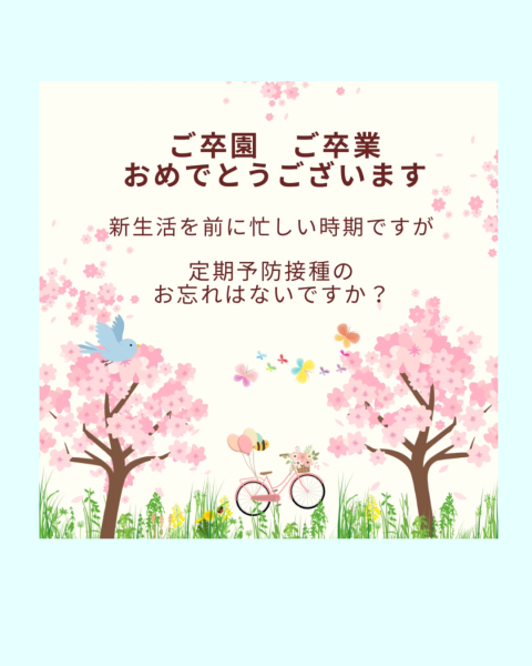 新生活を前にし、ワクワク☆ドキドキの忙しい時期ですが、定期予防接種の